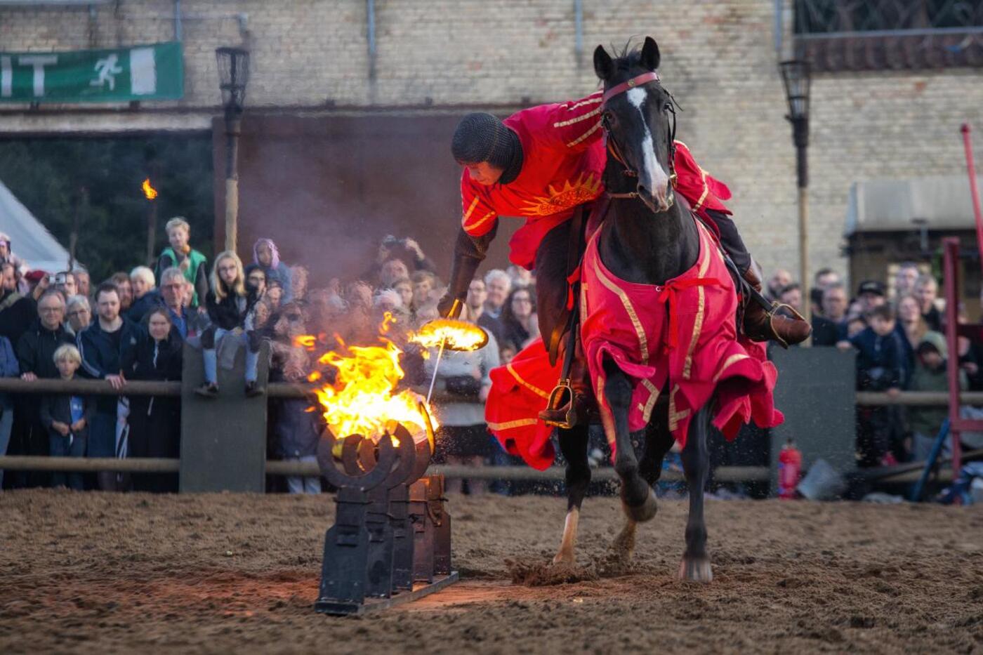 I Borggården kan du opleve et glædeligt og spændende gensyn med den tyske riddertrup Die Löwenritter, der kæmper i den flotte ridderturnering. Nogle gæster kan måske huske Die Lövenritter, der også optrådte på Horsens Middelalderfestival i 2015. I år kan publikum opleve ridderturneringen fra ståtribuner, der gør det lettere at følge med i alt, hvad der sker i arenaen. Rygtet lyder også, at der er kommet borgere til vores middelalderby på FÆNGSLET som vil gøre stemningen omkring ridderturneringerne endnu mere festlig.