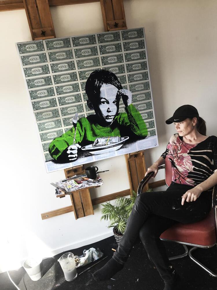 Den italienske kunstner Millo skaber ofte storskala gavlmalerier med venlige karakterer i urbane bymiljøer. Han bruger simple sorte og hvide linjer med små farvestænk, og indlemmer ofte arkitektur i sine historiefortællende værker. Millo har tidligere skabt værker i bl.a. Indien, Spanien, Norge, Italien, New Zealand, Kina og Australien. Værket i Horsens er kunstnerens første i Danmark.
