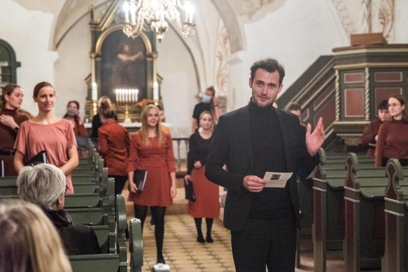 Koret var opstillet i en bred formation med god afstand mellem sangerne, så man kunne overholde Corona-reglerne og det at koret var bredt ud i rummet gav lyden en ekstra flot dimension. Dette kunne have været en udfordring for et mindre godt kor, men de unge kvinder fra Vox Mariæ klarede opgaven uden den mindste fejl og de var særdeles velsyngende.
