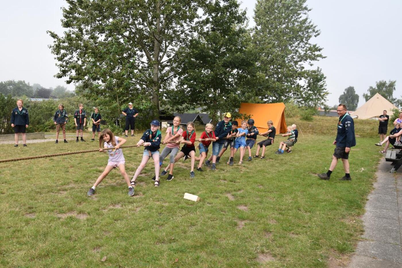 Normalt foregår oprykningen i forbindelse med aktivitetsdagen ved Vestbirk Søerne, men da dette arrangement jo er aflyst i år, blev oprykningen holdt ved spejderhytten.
