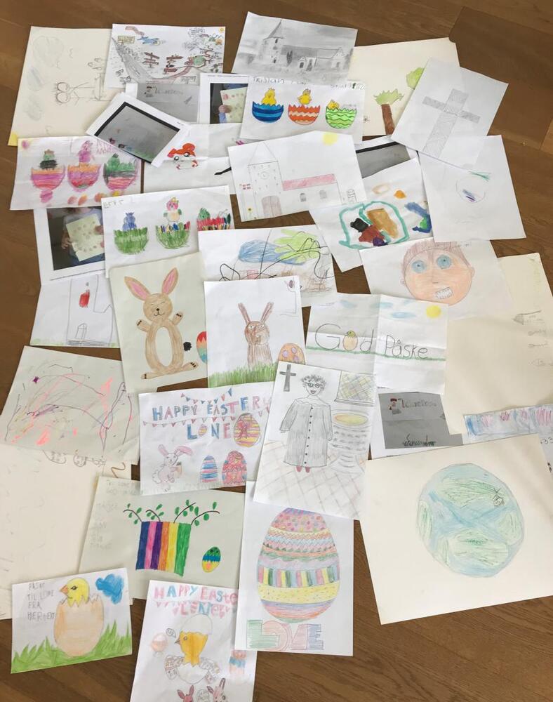 Alle børn/unge mennesker, der har tegnet en tegning til præsten, kan torsdag 30. april eller tirsdag 5. maj i tidsrummet 8.00 - 17.00 som tak hente en pose slik hos præsten i Præstegården.