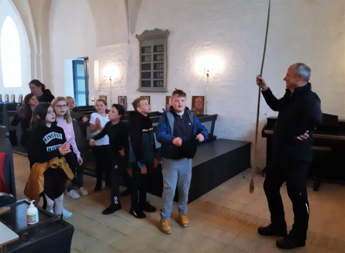 Der var dog ingen sure miner hos børnene, som fik lov til at gå på opdagelse i kirken fra kælder til kvist, eller rettere: fra krypt til kirketårn. Således bød de to intense dage på alt fra kirke og kirkegårdsrundture over klokkeringning, salmedans og dåbsleg med bamser til eftertænksomhed over hvordan livet efter døden mon tager sig ud? Man kan tegne sig ud af meget, og en af de kvikke elever fandt på, at Solen er Guds vindue. Sådan en tanke er skøn: især når solen stråler ned over tegningerne og de tegnende.