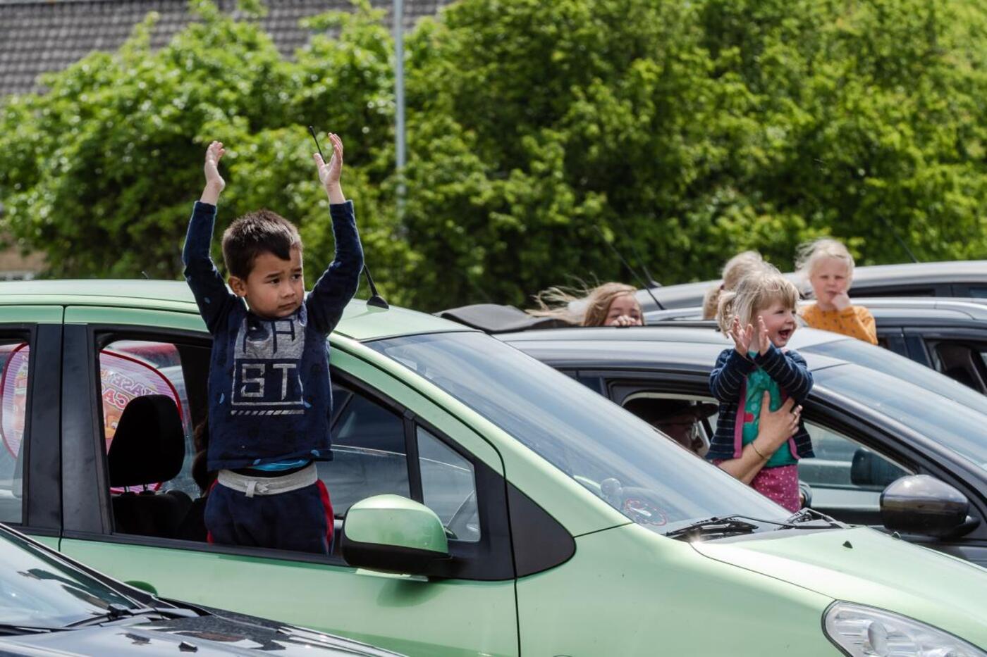 Senere på eftermiddagen var det selveste Hr. Skæg som kom på scenen for at underholde en propfyldt plads hvor der holdt mere end 150 biler som alle var fyldte med en voksen chauffør og børn som mest hang ud ad de nedrullede vinduer for at få øje på deres store helt.