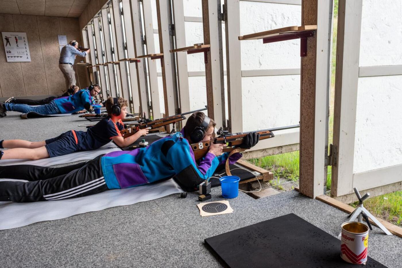 Som noget særligt ligger alle skytter på deres eget personlige underlag så de ikke afsætter virus på gulvet og eventuelt overfører det til den næste som skal ligge i båsen. Mellem skydningerne, når man skifter skytter, skal våbnene rengøres og afsprittes så de er klar til næste skytte. Det samme gælder også for de obligatoriske høreværn som alle skal bære på skydebanen.