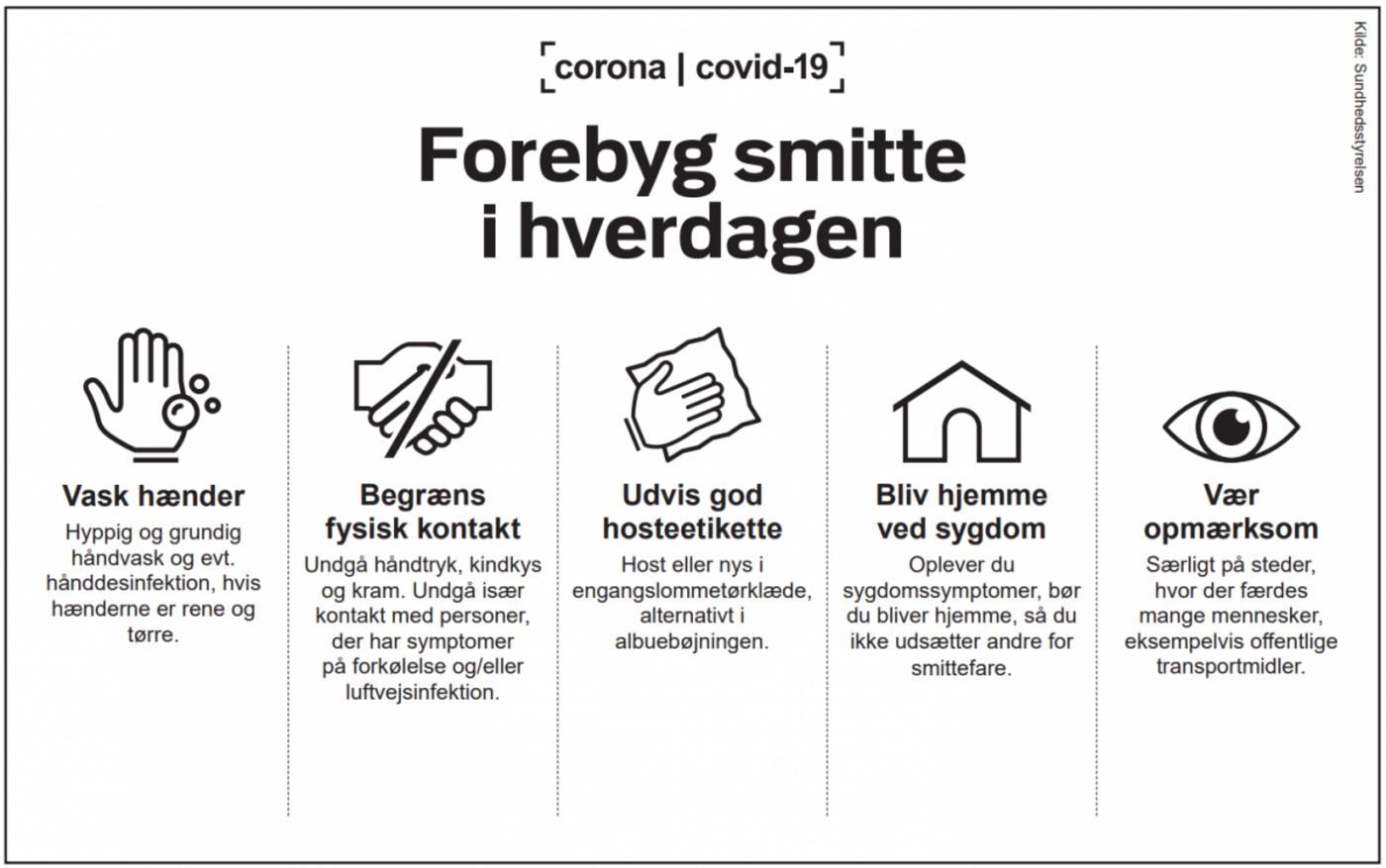 • Hyppig og grundig håndvask - brug håndsprit, hvis du ikke kan vaske hænder