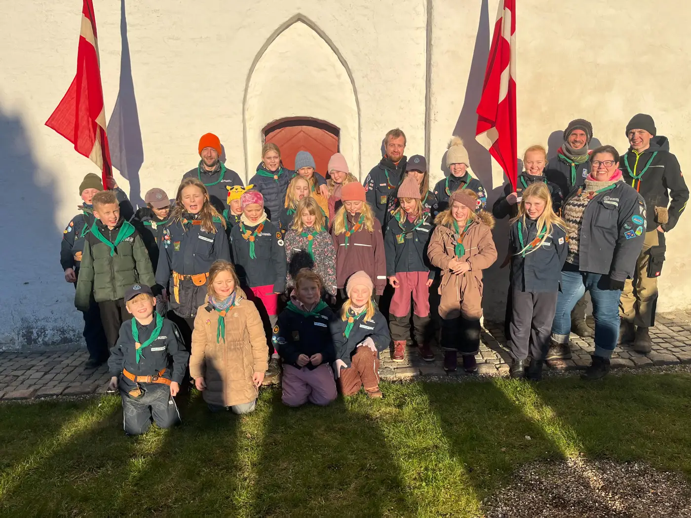 Spejdere fra Peder Skrams Gruppe stod skulder ved skulder foran Østbirk Kirke efter Spejdernes Nytårsparade sidste år. Fanerne var på plads, kinderne røde af kulde og humøret højt – klar til familiegudstjeneste for børn og barnlige sjæle.