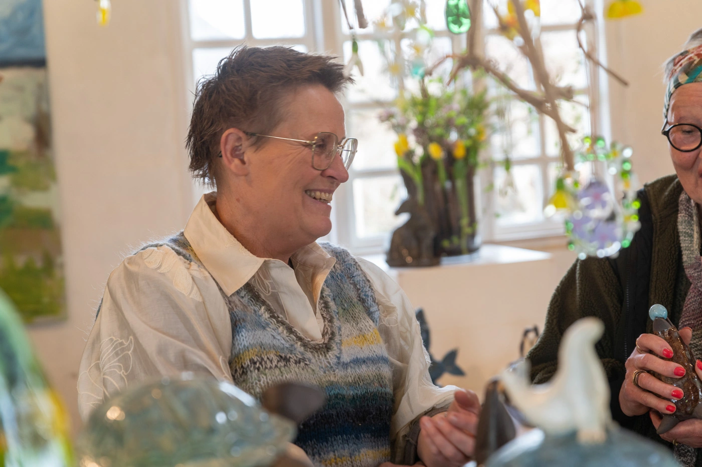 Mange kiggede forbi i løbet af dagen. Nogle kom målrettet efter kunsten. Andre stak hovedet ind, fordi de kendte stedet og vidste, at der altid venter en hyggelig stund. Fælles for dem var, at de fik tid til at gå rundt, se de mange smukke ting og falde i snak.