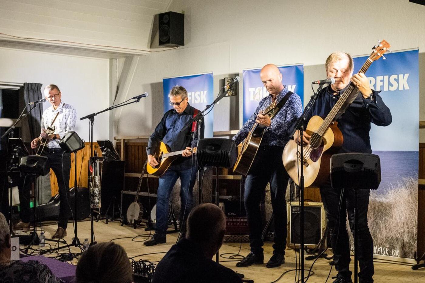 Tørfisk er fire garvede musikere som har stået på de danske scener i 38 år og man mærker tydeligt hvordan de ubesværet ping-ponger vittigheder mellem hinanden, som kun rigtig gode venner kan gøre det. De går tæt på i deres jokes og intet emne er for lille til at blive vendt og lavet sjov med.