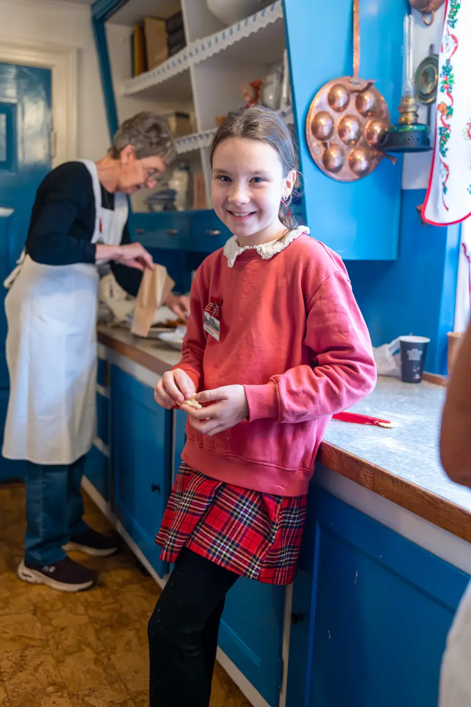 Et par rum længere inde i huset var duften af klejner så tæt, at man næsten kunne smage den i luften. Her mødte jeg Ide Sidelmann, der sammen med sin bedstemor stod og tryllede den ene klejne efter den anden frem. Hun viste stolt, hvordan man skulle sno de små dejstykker. Et enkelt kig, og man forstod, hvorfor hun syntes, det var sjovt at være med.